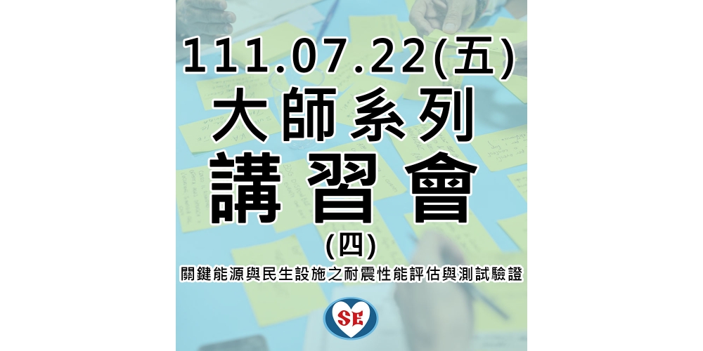 『大師系列講習會(四)-關鍵能源與民生設施之耐震性能評估與測試驗證』