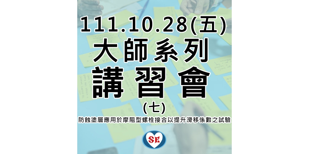 『大師系列講習會(七)-防蝕塗層應用於摩阻型螺栓接合以提升滑移係數之試驗』