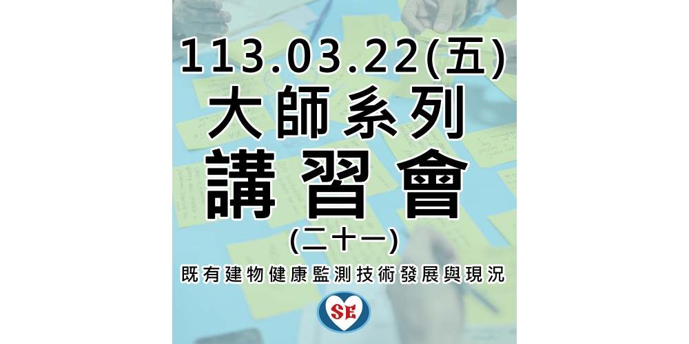 『大師系列講習會(二十一)既有建物健康監測技術 發展與現況』