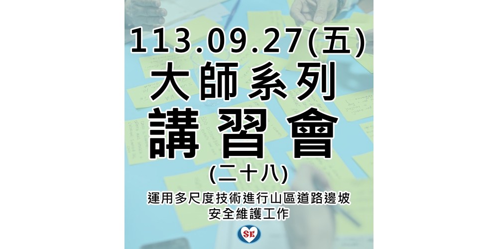 『大師系列講習會(二十八)-運用多尺度技術進行山區道路邊坡安全維護工作』